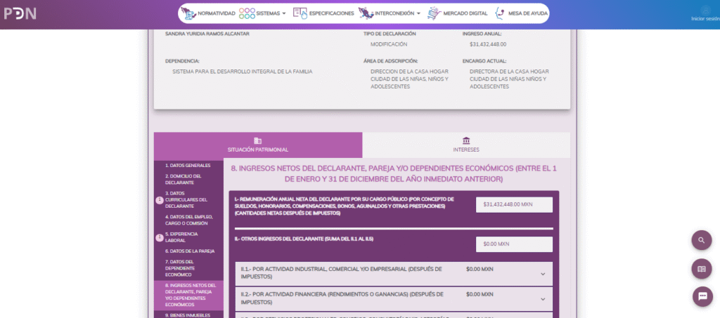 Hoy 14 de noviembre de 2025 ratificamos sus ingresos de Sandra Ramos por $31 millones de pesos que obtuvo por su paso en la casa hogar en la Secretaria Ejecutiva (SNA) y en el Sistema Nacional Anticorrupción.