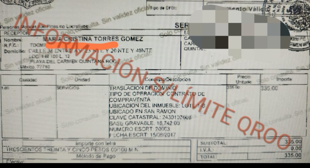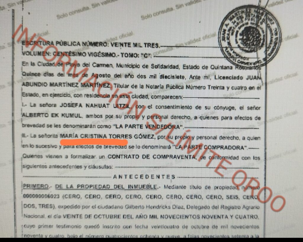 En notario público que lo avalo fue el 34 del municipio de Playa del Carmen.