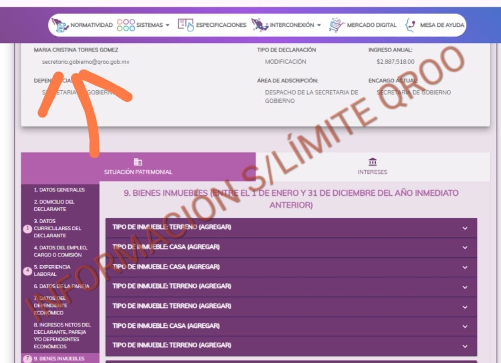 Por servicios jurídicos que presta Cristina Torres se lleva de ganancias anuales $1 millón 260 mil 636 pesos, datos obtenidos del Sistema de evolución patrimonial, de declaración de intereses y constancia de presentación de declaración fiscal, a quienes les presta en servicio se lo daremos a conocer en la segunda entrega de nuestra investigación.