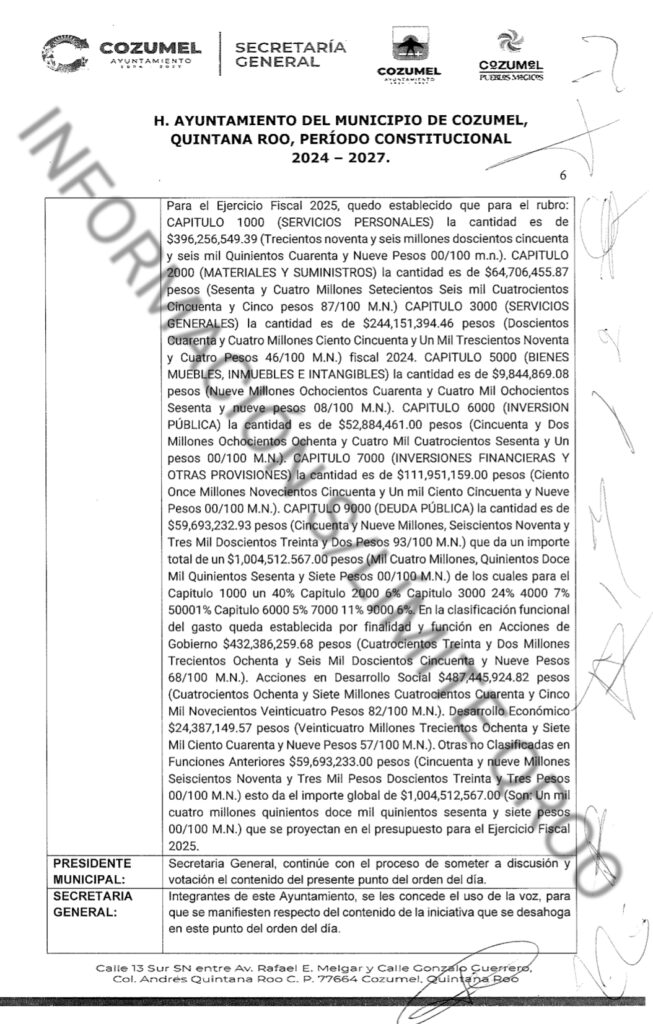Para este ejercicio fiscal 2025 para contener los ataques de los medios en Cozumel le aumentaron a Comunicación Social el 45% de su presupuesto, disminuyendo el presupuesto en Seguridad del 15%, en Turismo el 43% y en Obras Públicas el 05%.