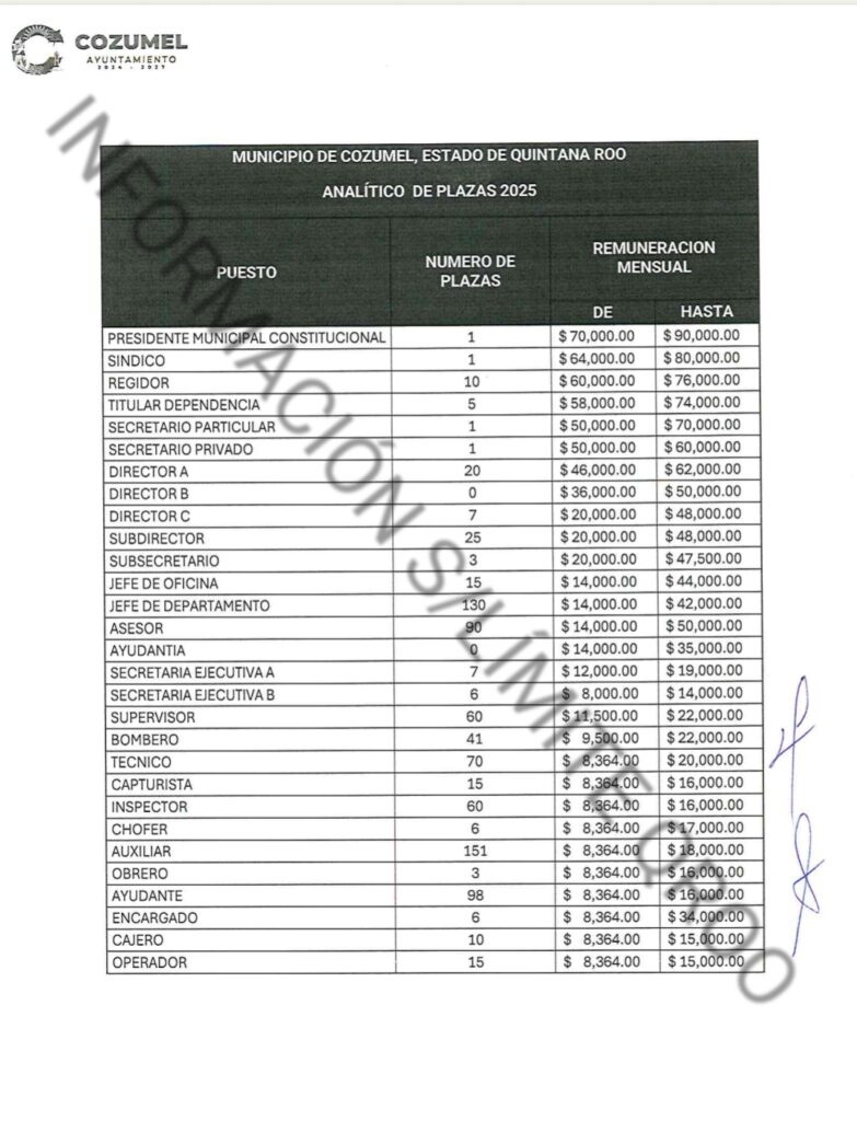Tan pronto tuvo un aumento los servicios personales en Cozumel, los aviadores comenzaron a florecer en la administración del PRIMOR José Luis Chacón, aumento la nomina a 1538 plazas y donde los salarios estipulados superan la ficción.
