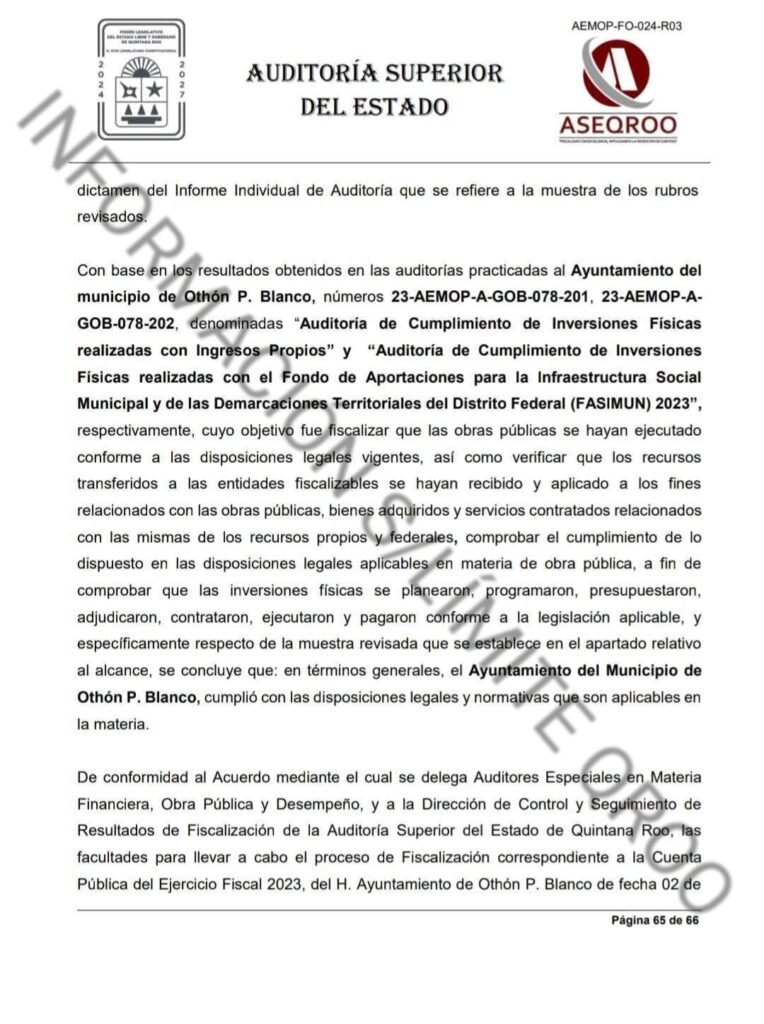 A esta IRREGULARIDAD Y CORRUPCIÓN en la auditoría que se le aplicó al ayuntamiento de parte de la ASEQROO deben los regidores tomar cartas en el asunto y presentar sus denuncias ante las autoridades correspondientes para que sea investigado y se sanciones a quien llevo a cabo las auditorías y ocultó tremendas IRREGULARIDADES para proteger al Auditor.