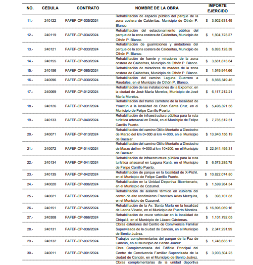 Cancún, en el Municipio de Benito Juárez la ASEQROO detecto un presunto daño por $14 millones 977 mil 433 pesos por obras pagadas no ejecutadas, sin embargo de una sola llamada este daño se solvento.