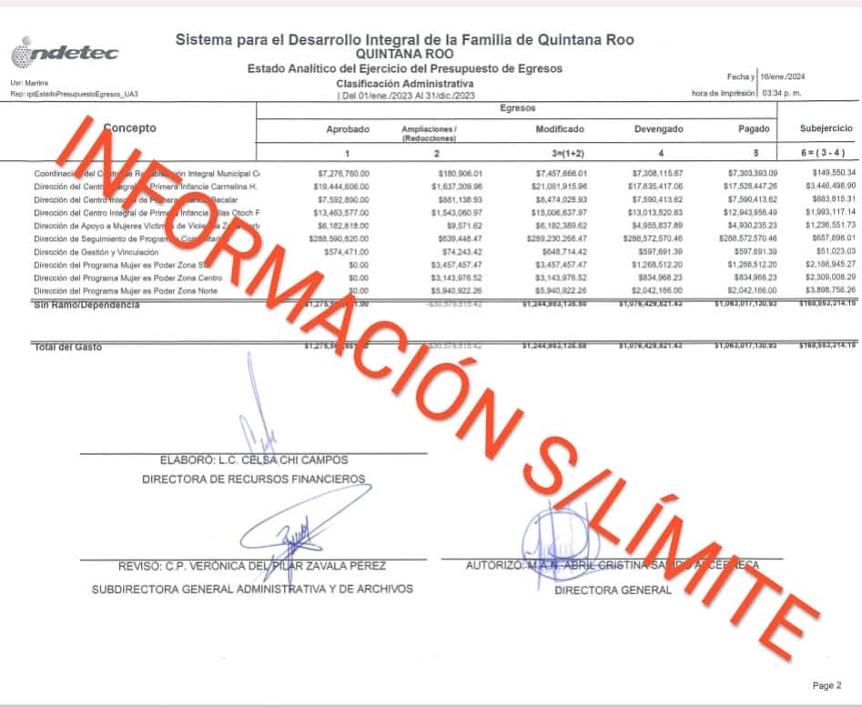 En la dirección de seguimiento de programa comunitarios se aprobó un presupuesto de $288 millones 590 mil 820 pesos, y se devengo (gastó) $288 millones 572 mil 570.46 pesos pero no hay rastro alguno en el portal de DIF Quintana Roo que compruebe a dónde y quiénes fueron los beneficiarios de estos recursos, estos datos los obtuvimos gracias a la federación.