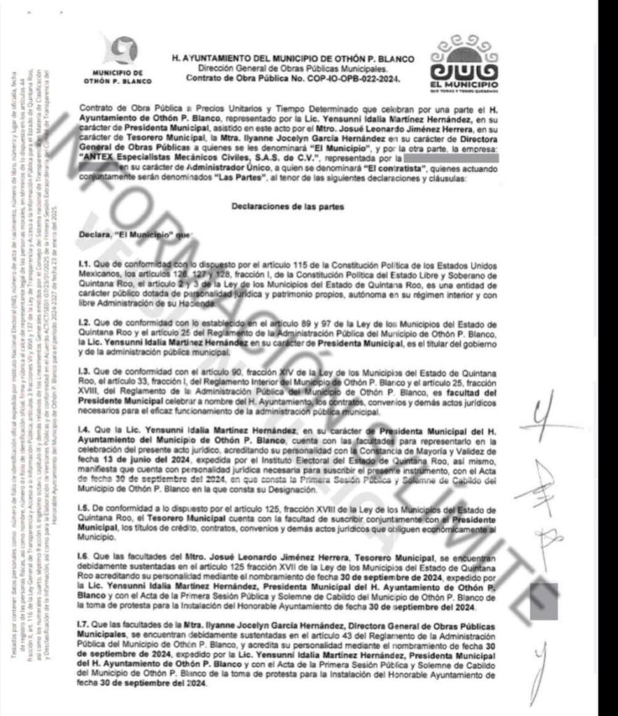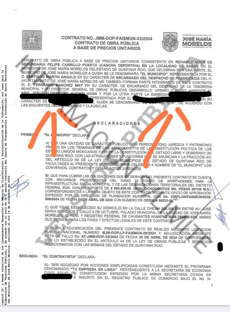 Erik Borges a través del ex regidor Santiago Martin Angulo entregaron contratos ILÍCITOS violando las leyes de obras públicas, y para ocultar este tremendo robo a las familias morelenses, solo reportaron 7 contratos de los mas de 60 que se entregaron tan solo en 2025, testaron los contratos ( ocultaron el nombre de la empresa beneficiada) para ocultar el desvío de recursos federales destinados para las familias morelenses en total IMPUNIDAD de las autoridades Quintanarroenses, son los protegidos de la gobernadora Mara Lezama, así lo presume lo presume el alcalde en todo el ayuntamiento.