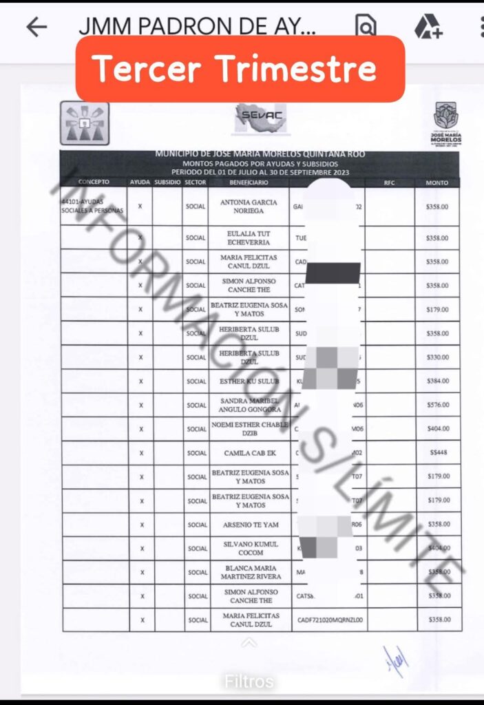 Al revisar los estados analíticos del gasto y el padrón de beneficiarios grandes fue la sorpresa del saqueo de estos delincuentes de cuello blanco comandado por el alcalde Erik Borges Yam.
