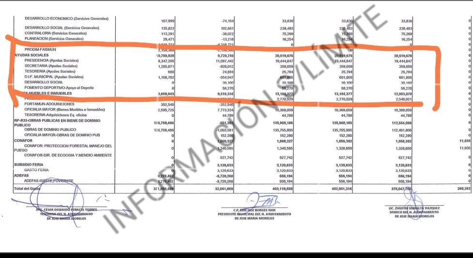 El cabildo de José María Morelos aprobó recursos en 2023 para apoyar a las familias MORELENSES de bajo recursos por $10 millones 789 mil 928 pesos en Ayuda Sociales sin embargo reportaron el gasto por $20 millones 519 mil 676 pesos del 01 de enero al 31 de diciembre de 2023.