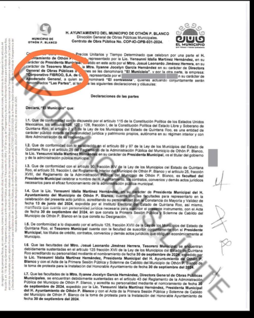 Solapado por el nuevo Cabildo y por la presidenta Anticorrupción municipal Lidia Rojas Fabro, la alcaldesa Morenista Yensunni Idalia Martínez tan pronto tomo esta nueva administración (2024-2027) gracias al gobierno de Quintana Roo, entregó varios contratos de manera irregular como regalo de navidad en 2024.