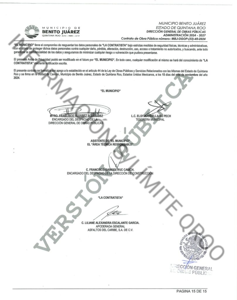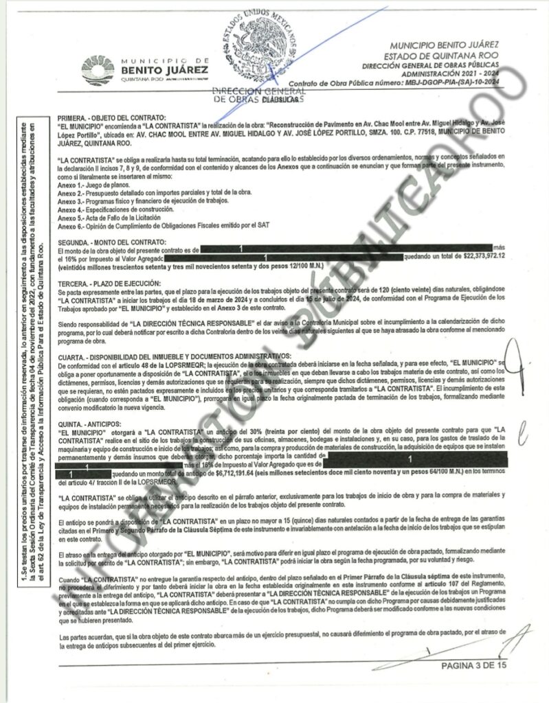 EN TRES CONTRATOS DE OBRAS PÚBLICAS EL AYUNTAMIENTO DE BENITO JUAREZ ENTREGO AL “ZAR DE ASFALTO $80 MILLONES 634 MIL 927.80 PESOS DONDE SOLO LA EMPRESA ASFALTO DEL CARIBE FUE LA PARTICIPANTE CURIOSAMENTE