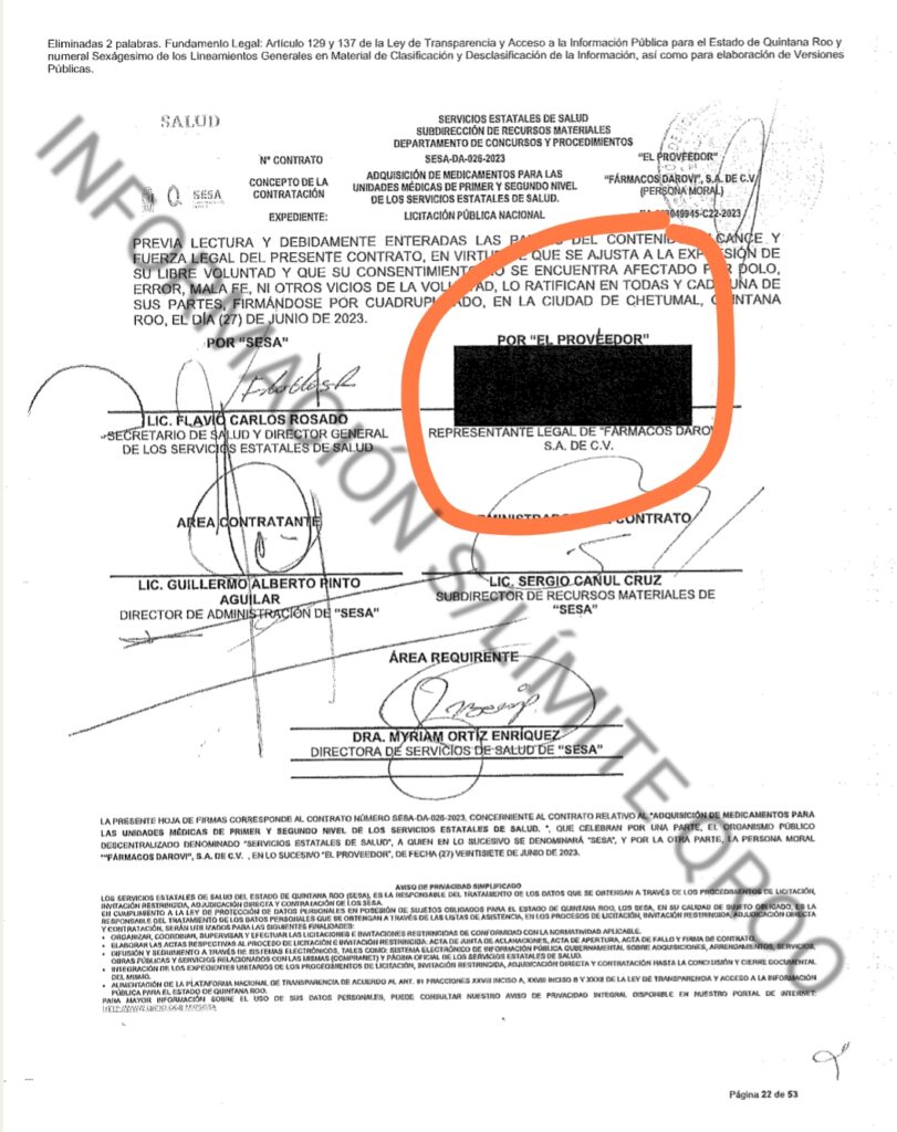 Desde el 2023 el secretario de salud de Quintana Roo, Flavio Carlos Rosado luego del escandalo de la compra de medicamentos por $300 millones de pesos a una empresa Fantasma y donde participo el senador de Morena Eugenio Segura Vazquez comenzo a ocultar todos los contratos de las compra de medicamento para surtir los Hospitales Generales de los municipios del estado.