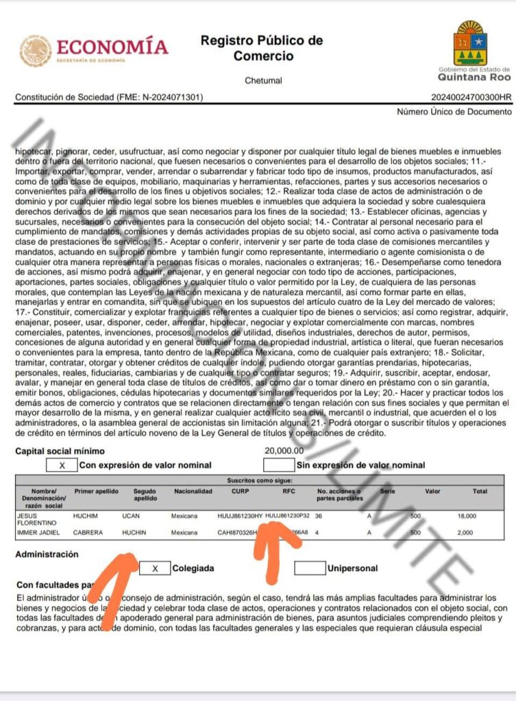 El 28 de mayo de 2024 el director de obras públicas de José María Morelos Jesús Florentino Huchim Ucan junto a Immer Jadiel Cabrera Huchim crean la empresa KM CONSTRUYE 50, SOCIEDAD ANÓNIMA DE CAPITAL VARÍABLE ante el Registro Público del Comercio, días después se convirtió en el proveedor favorito de la administración de Erik Borges Yam.