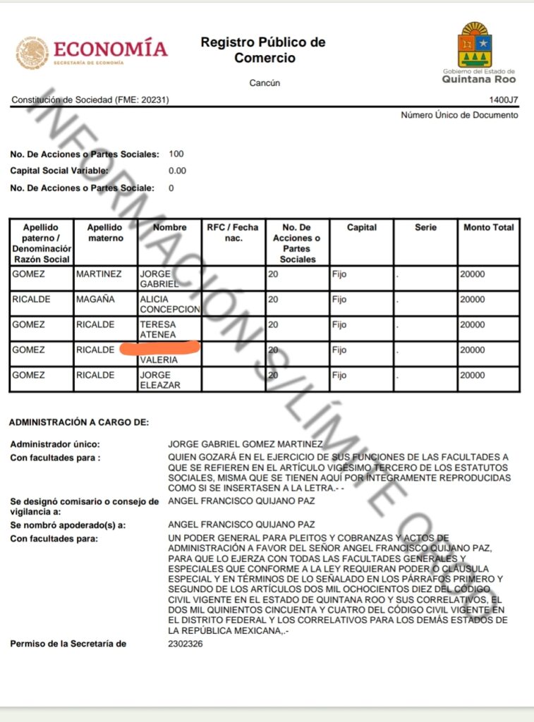En el registro Publico de la Propiedad revela que la rentadora COMPRA VENTA, ARRENDAMIENTOS DE CUALQUIER TIPO DE VEHÍCULOS, AUTOMÓVILES, MOTOCICLETAS, BICICLETAS, CARROS DE GOLF, MOTOCICLETAS Y TRICICLOS ACUÁTICOS, ETC., PARA LA PRESTACIÓN DE SERVICIOS, DE RENTADORA TURÍSTICA EN GENERAL. – – – – – – – – – – – – – – – – – – – – – – – II.- COMPRA VENTA, IMPORTACIÓN, EXPORTACIÓN, DISTRIBUCIÓN, PROMOCIÓN Y COMERCIALIZACIÓN DE TODA CLASE DE VEHÍCULOS AUTOMOTORES PARA LA PRESTACIÓN DE SERVICIO DE RENTA EN GENERAL.- – III.- EJECUTAR TODA CLASE DE ACTOS DE COMERCIO, PUDIENDO COMPRAR, VENDER, ARRENDAR, SUBARRENDAR, ADQUIRIR, DISTRIBUIR, IMPORTAR, FABRICAR, COMERCIALIZAR Y EN GENERAL, NEGOCIAR CON TODA CLASE DE PRODUCTOS RELACIONADOS CON PRODUCTOS TERMINADOS, MATERIAS PRIMAS, RESTAURACIÓN, MANTENIMIENTO DE VEHÍCULOS AUTOMOTORES POR CUENTA PROPIA O AJENA, EN LA REPÚBLICA MEXICANA O EN EL EXTRANJERO. – – – – – – – – – – – – – – – – – – – – – – – – – – – – – – – – – – – – IV.- EL ESTABLECIMIENTO, COMPRA, VENTA, OPERACIÓN, SUPERVISIÓN, ADQUISICIÓN, CONSTRUCCIÓN, COMERCIALIZACIÓN, REPARACIÓN, ADMINISTRACIÓN Y EXPLOTACIÓN DE CUALQUIER ALMACENES, BODEGAS, Y OFICINAS NECESARIOS Y CONVENIENTES PARA EL DESARROLLO DE SU OBJETO SOCIAL. – – – – V.- EL DISEÑO, CONSTRUCCIÓN, SUPERVISIÓN, FRACCIONAMIENTO, SUBDIVISIÓN, OPERACIÓN Y REMODELACIÓN DE TODA CLASE DE BIENES INMUEBLES, TALES COMO TERRENOS, CASAS, CONDOMINIOS, HOTELES, MOTELES, CABAÑAS, LOCALES COMERCIALES, PLAZAS COMERCIALES, DEPARTAMENTOS, ETCÉTERA, ASÍ COMO LA PRESTACIÓN DE TODOS LOS SERVICIOS RELACIONADOS CON LA INDUSTRIA TURÍSTICA.- – – – – – – – – – – – – – – – – – – – – – – – – – – – – – – – – – – – – – – – – – – – – – – – – – – – –