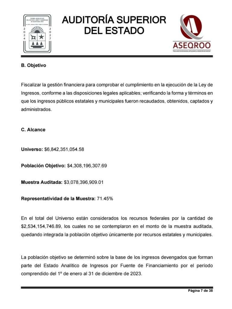 EN LA CUENTA PÚBLICA 2023 EN MATERIA DE INGRESOS PÚBLICO, LA ASEQROO SOLO LE AUDITO ALREDEDOR DE TRES MIL MILLONES DE PESOS DE LOS MAS DE SEIS MIL 842 MILLONES DE PESOS A LA ADMINISTRACIÓN DE ANA PATRICIA PERALTA.