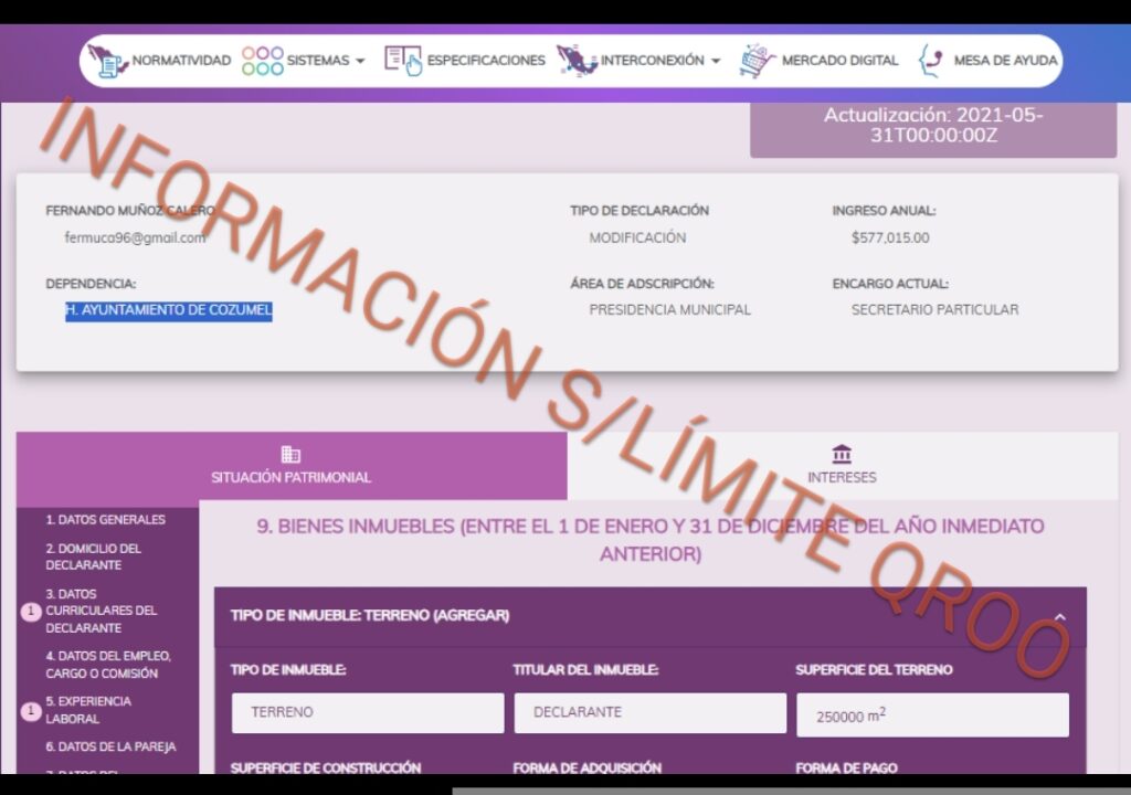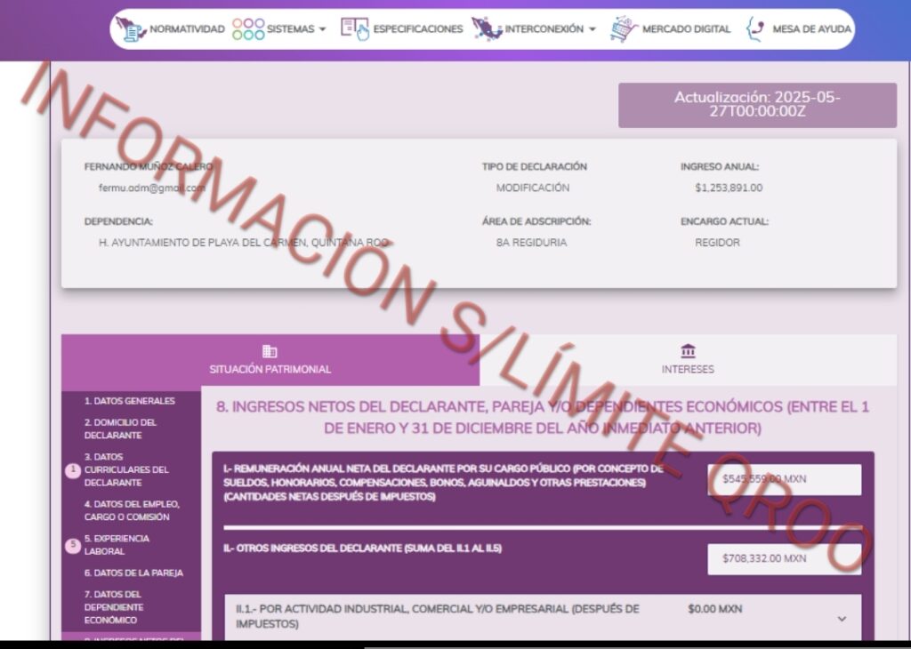 POR SU PASO COMO SERVIDOR PÚBLICO FERNANDO MUÑOZ CALERO NO HA REPORTADO GANANCIAS MILLONARIAS MIENTRAS LA SECRETARÍA ANTICORRUPCIÓN Y BUEN GOBIERNO DE QUINTANA ROO DUERME EN SUS LAURELES.
