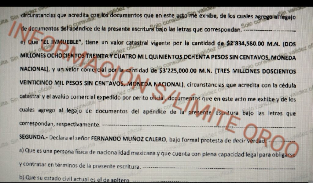 Antes de concluir sus funciones como director de operaciones en playa del Carmen, Fernando Calero el 19 de mayo de 2022 adquirió un departamento de lujo en Playa pagando de contado $3 millones 220 mil 560 pesos de acuerdo a los títulos de propiedad que obran en nuestro poder.
