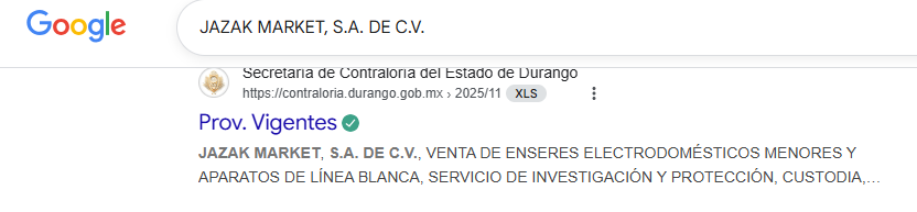 La secretaria de la contraloría de Durango señala a la empresa como proveedora de electrodomésticos y venta de aparatos de línea blanca emitido en 2025 en la misma fecha que Diego Casstañon le entrega el Contrato.