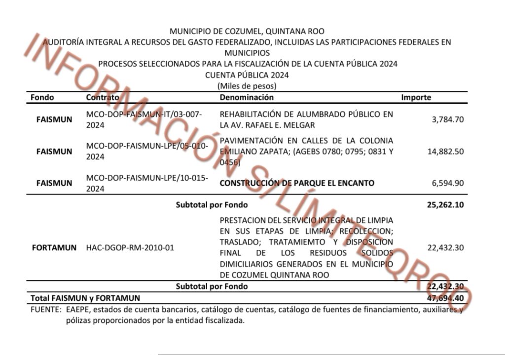 En conclusión, el municipio de Cozumel, Quintana Roo, no realizó una gestión eficiente de los recursos fiscalizados de la Cuenta Pública 2024, a esto hay que sumarle dos auditorias mas en camino con daños a la hacienda.